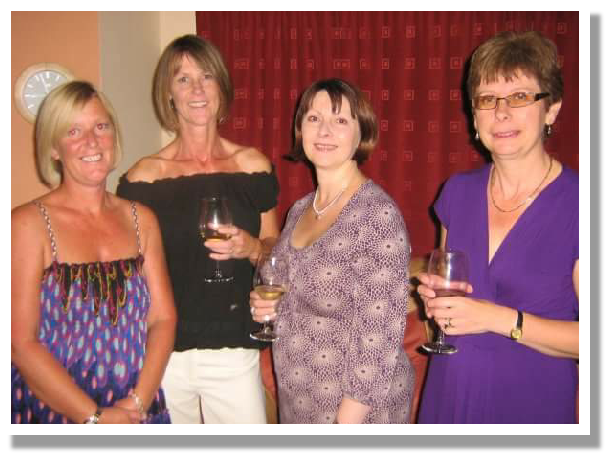 Alison Harris, Lynne Shanks, Sue Hull, Suzanne Atkins, Diane Vaughan, Jenny Vaughan, Cindy Blunden, & Kim Yardley, Cindy brought her dress collection.