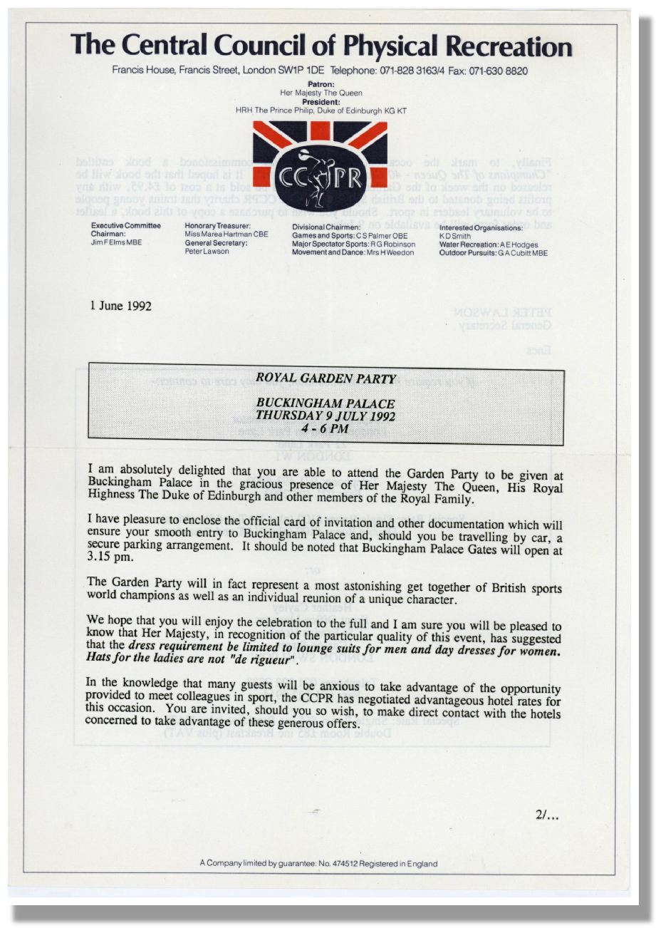 In 1992 the team was invited to a Royal garden party at Buckingham Palace !