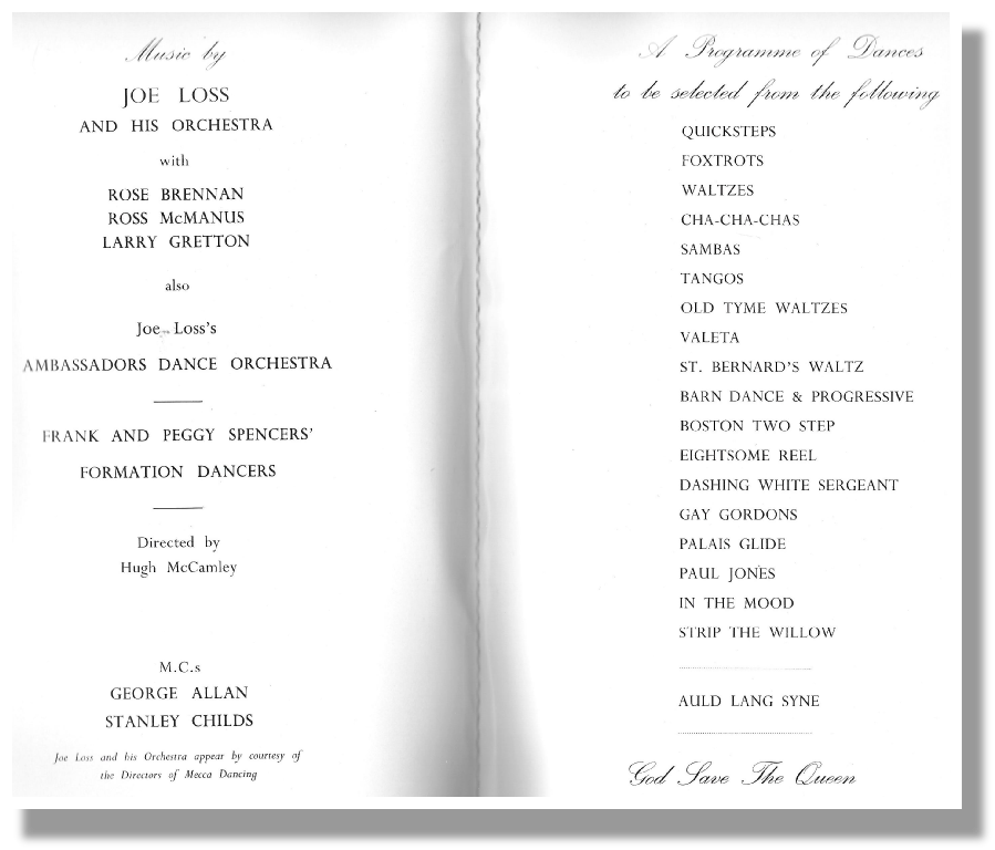 We were there so often that the doorman got to know us by our first names. We often danced to Joe Loss and his Orchestra, including when we danced at Buckingham Palace. He wanted us to accompany him and the Orchestra to Australia for a tour but there were many members in the team who could not give up their day jobs to do this.