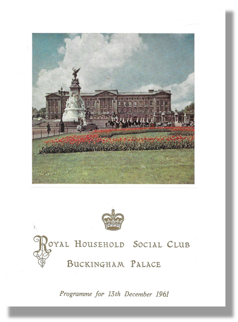 (Left and below) Programme from the cabaret performed by the Penge Professional Team for the Royal Household Social Club at Buckingham Palace, December 1961.