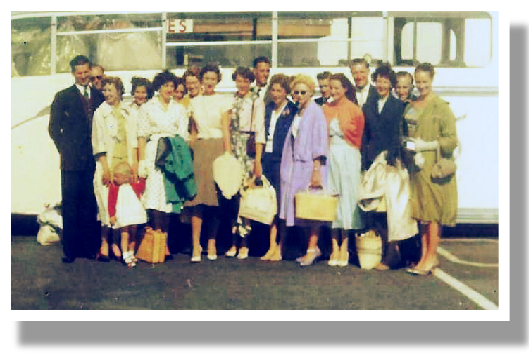 (Above) Penge Senior Ballroom Formation Team travelling to Bremen in 1986