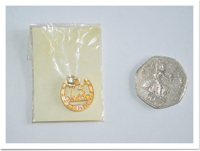 ( Above ) The brooch in it’s cellophane packet alongside a modern 50p piece to give you an impression of it’s size.