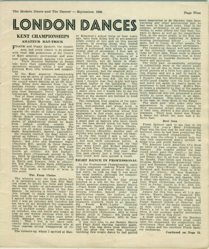 Alf later became captain of the Frank and Peggy Spencer Formation team. In 1958 he was invited to perform at the Royal Command Performance, held at the London Coliseum.