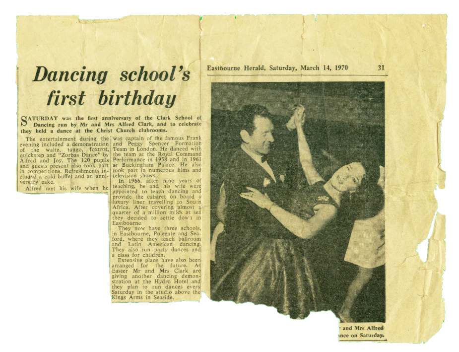 In 1969 they left the ships and settled in Eastbourne where they set up The Clark School of Dancing. After only a year they were running three schools specialising in Ballroom and Latin American dance.